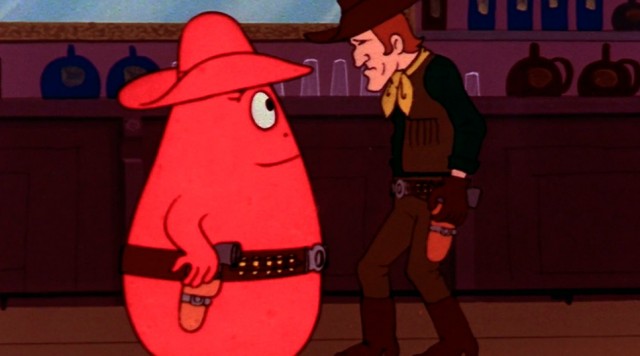 I en saloon er Barbapapaerne udklædt som cowboys.