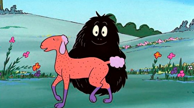 Barbapjuske fryser. Barbamama laver en meget effektiv strikkemaskine, så hun kan strikke nyt tøj til ham.