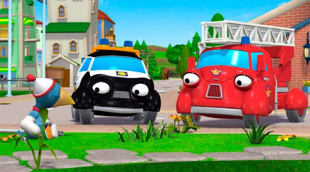 I Byens Helte møder vi politibilen Polle og brandbilen Betina, som hjælper med at holde den lille by tryg og rar.