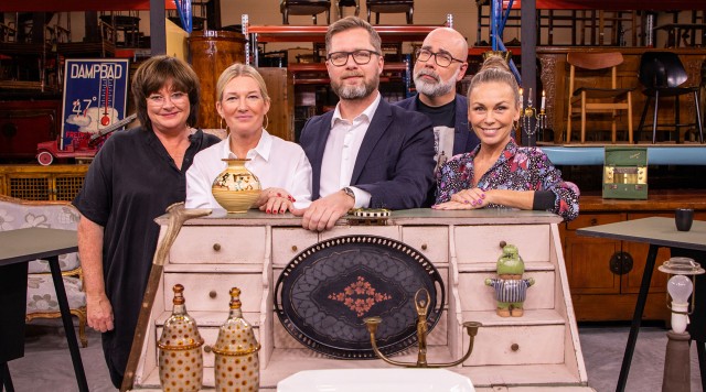 Lasse Rimmer har et fast greb om auktionshammeren, og Anne-Grethe Bjarup Riis og Brian Mørk er holdkaptajner, når det er tid til ugefinale.