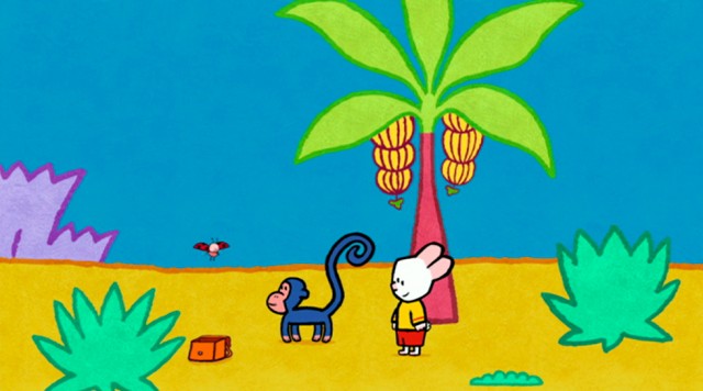 Louie og Yoko vil gerne spise bananer. Hvem kan hjælpe med at plukke dem fra træet? Louie tegner en abe, der er vild med bananer. Måske lidt for vild med dem.