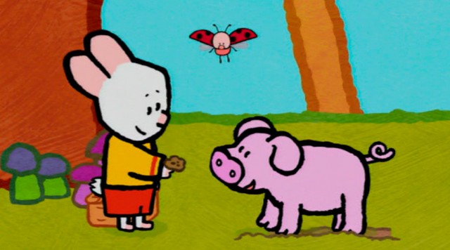Yoko og Louie har brug for hjælp til at plukke svampe. Louie tegner en gris. Grisen er en sand svampe-ekspert. Men den er også grådig!