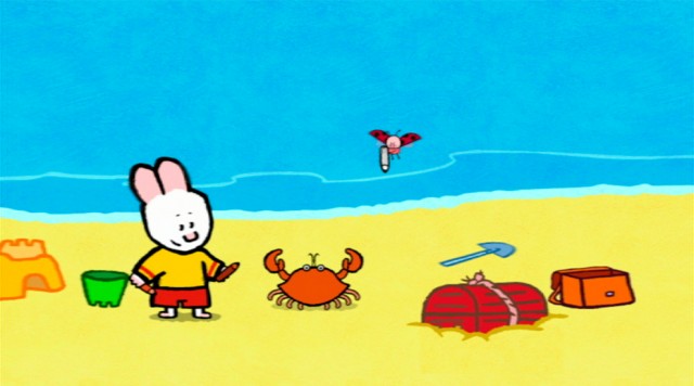 Louie og Yoko har fundet en skattekiste. Louie tegner en krabbe, som hjælper dem med at lukke kisten op med sine kløer. Louie og Yoko finder nogle sjove skatte!