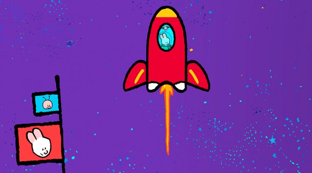Yoko og Louie ser månen lyse på himlen. Det er flot, men hvad med at tage derop og lege? Louie tegner en raket, og Louie og Yoko rejser en tur til månen.