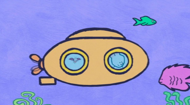 Louie og Yoko vil gerne se på fisk. Louie tegner en ubåd, så de kan komme tættere på fiskene. Louie og Yoko opdager fisk i alle farver, former og størrelser.