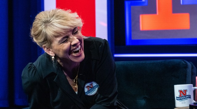 Der er masser af grin og god stemning, når Anders Breinholt og Ida Auken kigger på absurde og morsomme klip.