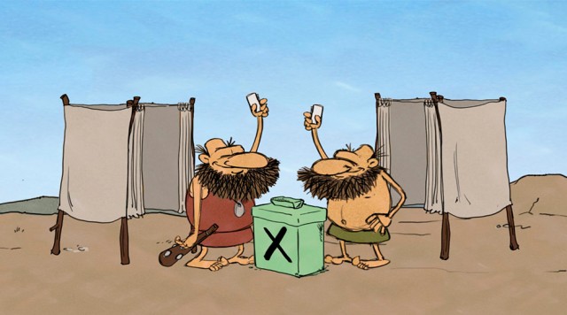 Hulemand Al og Hulemand Bob har bygget en storslået stol af sten. Den ligner nærmest en trone. Men de vil begge sidde i den, så hvad skal de stille op?