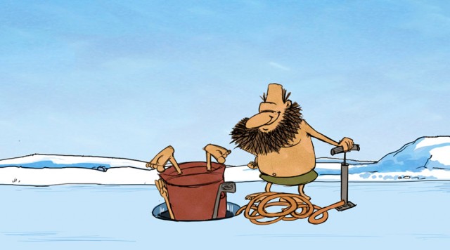 Hulemand Al fisker med sin kølle gennem et hul i isen. Men det er ikke spor nemt. Så får Hulemand Bob en genial idé.