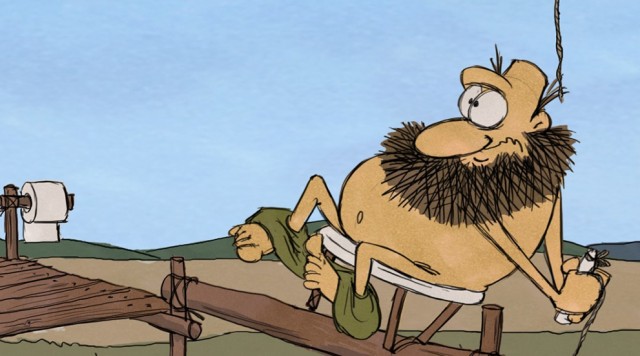 Hulemand Al og Hulemand Bob har bygget en storslået stol af sten. Den ligner nærmest en trone. Men de vil begge sidde i den, så hvad skal de stille op?