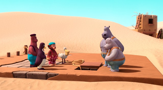 Midt ude i ørkenen træder vennerne ind i en halvt nedsunken bygning.